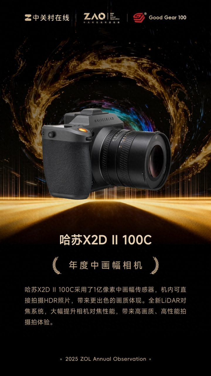2025年度百大优秀科技产品GG100:年度中画幅相机哈苏X2D II 100C